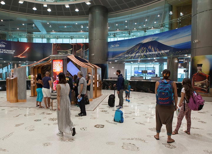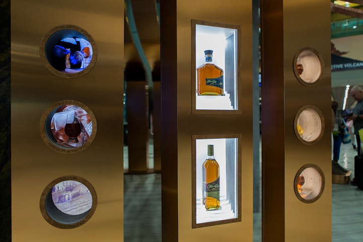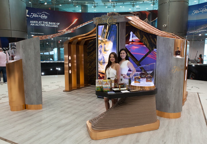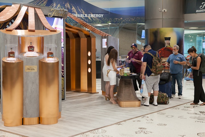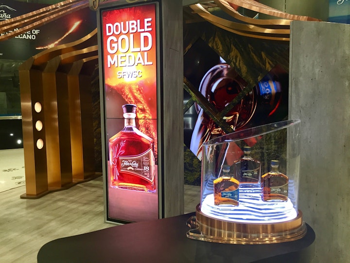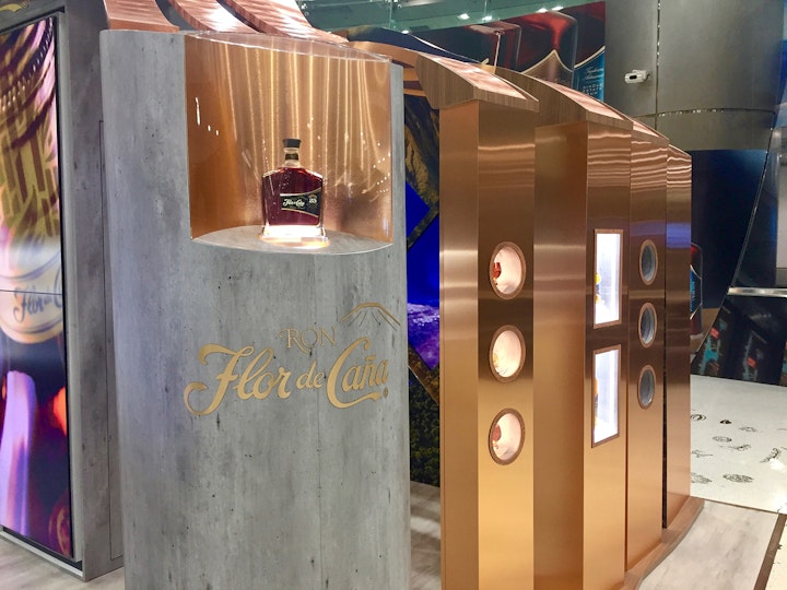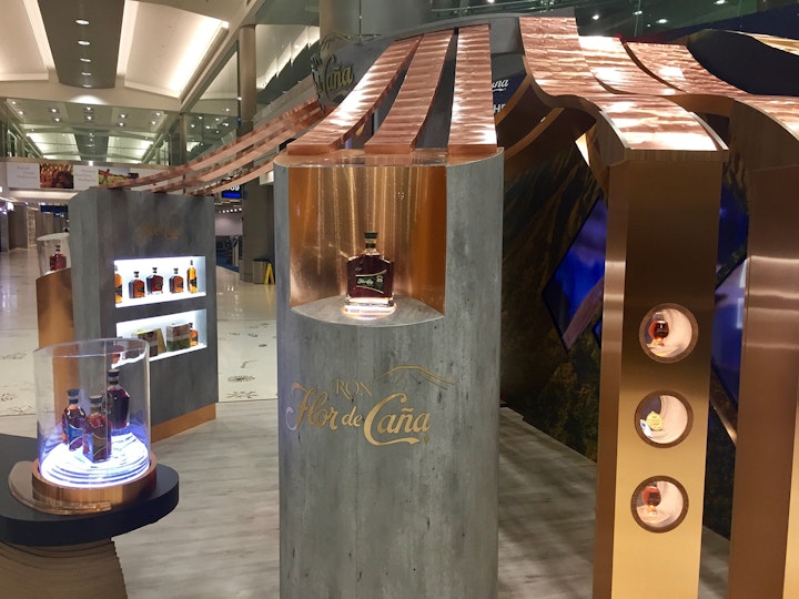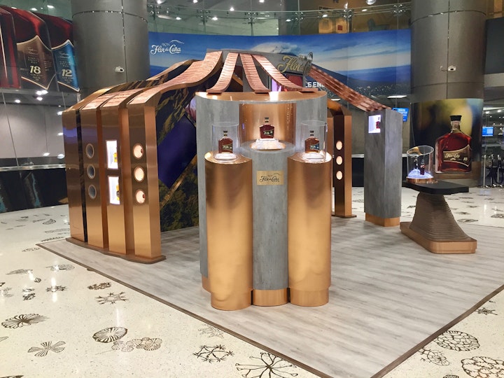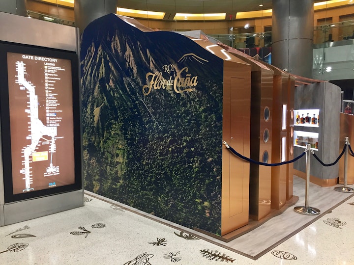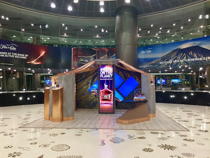 This large display was built at the Miami International Airport as part of the launch for Flor de Caña rum. The booth design represents the San Cristobal volcano in Nicaragua where the distillery has been since 1890. The structure features 12 screens within four niches with vertical screens; edited digital content for vertical and horizontal formats showcasing Flor De Caña Rum history, family tradition, adventure and eco-friendly philosophy and it’s production. As well as a tasting bar with Flor de Caña rum portfolio.